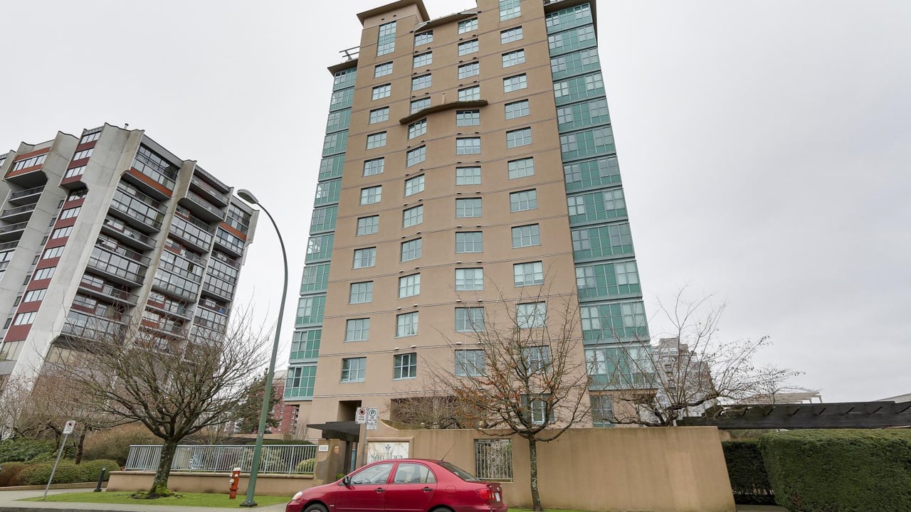 North West facing corner suite with panoramic views from southern downtown, water & all the way to the mountains!! 'THE SOVEREIGN' - Fully rainscreened, well built, well managed & well maintained concrete 16 storey building. Open spacious 2 bed/2 bath (961 sq ft) layout features hardwood flooring, lots of windows, covered balcony, large kitchen with balcony access. This building just had all pipes, elevators & hallways upgraded. Centrally located in the heart of Lonsdale Community - steps to community centre, library, hospital, good restaurants, cafes, retails & public transit. Please don't miss the beautiful sunset view from this unit!