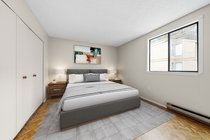 Bright and well-proportioned home featuring generous windows, two spacious bedrooms, and two private patios with peaceful forest views. Tucked away on a quiet cul-de-sac, this corner unit offers exceptional privacy and a townhouse-style layout with only one neighbouring unit above and below. Includes in-suite laundry. Conveniently located near Stoney Creek Community School and within a 15-minute walk to Burnaby Mountain Secondary. Close to Lougheed Mall and Skytrain. A great opportunity for first-time buyers or investors alike.